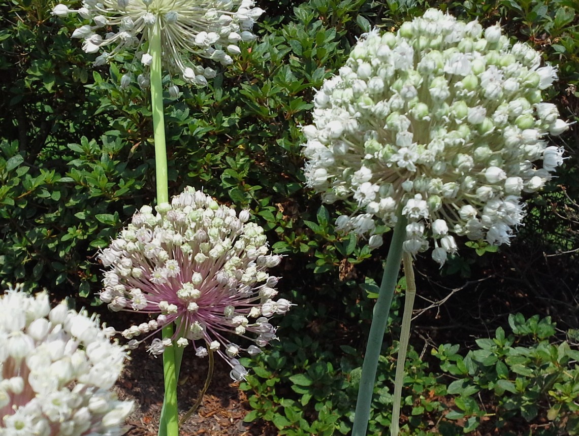 I noticed two giant black wasps on the flower of the leeks.