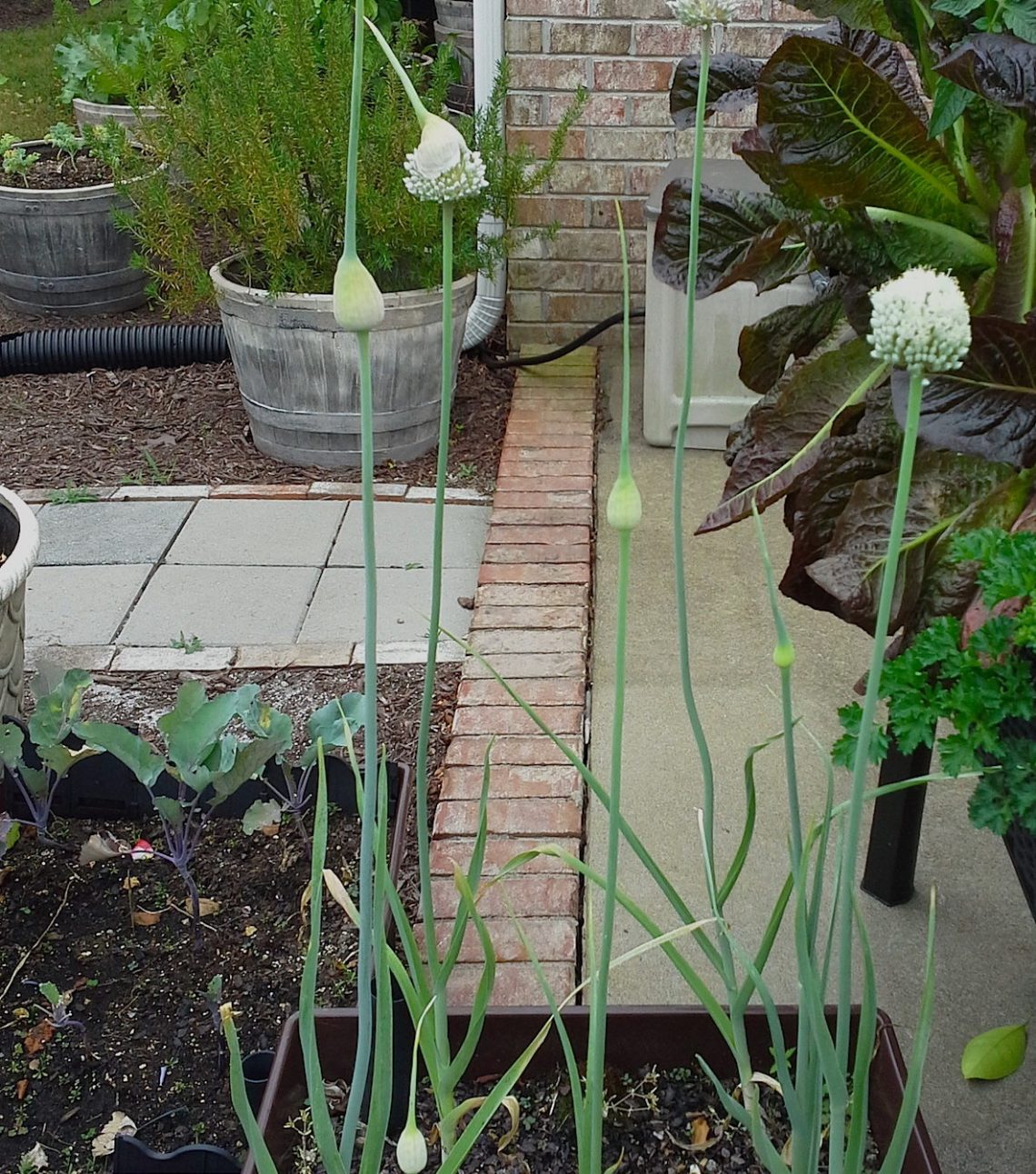 The instructions were to plant in well-drained, moist soil and with 6+ hours of sun. The companion planting guide suggested (without any explanation as to the whys of it) that Kohlrabi dislikes strawberries and tomatoes, and were beneficial next to onions. The best I could do was last season leeks that were starting to flower. So I planted them there.