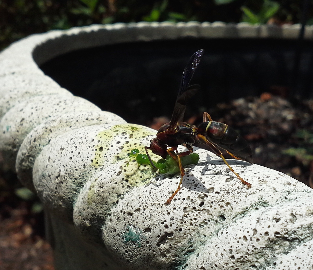 Not sure why I hesitated. I pick Japanese beetles off all the time. And I’m not sure what I thought would happen by leaving the worms on, but I definitely was not expecting the wasps. And what were the odds of me being there watching when they showed up.